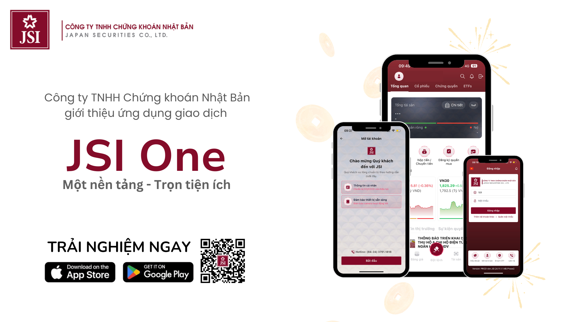 | Công ty TNHH Chứng khoán Nhật Bản (JSI) hân hạnh giới thiệu đến Quý khách hàng ứng dụng giao dịch trên nền tảng di dộng – JSI One, mang đến trải nghiệm đầu tư an toàn – tiện lợi – nhanh chóng với các tiện ích: